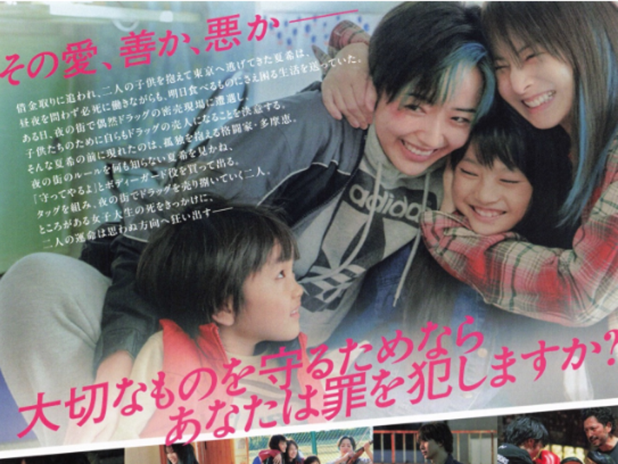 ざっとしたあらすじは、北川景子演じる2児の母親である「夏希」が、とにかくお金が無く、苦しい生活を送る中、格闘家の「多摩恵」と仲を深めながら、ヤクの売人になっていく映画